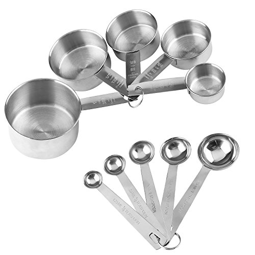 - DEEP ELONGGATED HANDLES FOR EASY SCOOPING – The measuring spoons and cups are designed with innovative round-shaped heads, the rounded bowls are easy to fill with dry and liquid ingredients, and the spoons long comfort grip handles will fit easily most container openings.