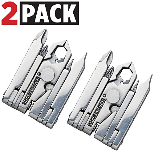 Swiss+Tech ST53100M2 Micro Pocket Multitools (19-in-1) for Camping, Outdoors, Hardware - 2 Pack, Polished Stainless Steel