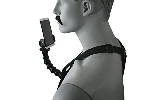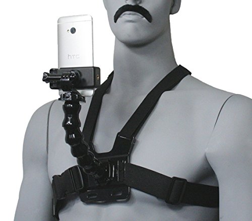 -. Feature : LIVESTREAM POV footage with your smartphone, or GoPro Camera. This mount includes two wearable configurations; 1. to view your screen while live streaming, 2. to record action video while wearing your phone with our patent pending phone mount. / HANDS FREE STREAMING - Easy to operate, just clip in your phone into the clamp, adjust goose-neck, and you're ready to shoot. No matter what your phone model/size, this product will fit. / ADJUSTABLE SIZE - The Chest harness is adjustable to fit most sizes. Includes The patent pending Action Mount to let you wear your phone. The unique design give you the strongest hold on the market! / GOPRO COMPATIBLE - This Chest mount can also be used for attaching your quick-release GoPro camera too. Chest mount let's you livestream video footage while on Periscope or Meerkat. It tilts to capture whatever view angle you choose. / WHAT YOU GET - With purchase you receive Chest Harness, Goose-neck, Phone Clamp Holder, screw adapter, J-Hook and thumb screw, Action Mount adapter, GoPro style Wrench.