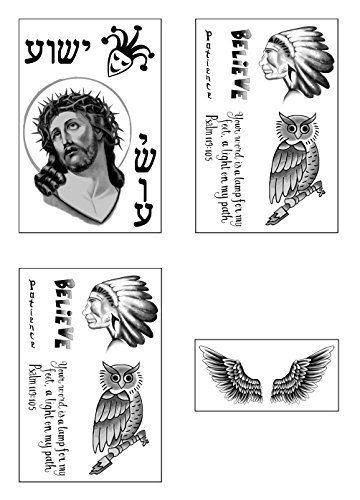 Set of 3 Justin Bieber Inspired Temporary Tattoo Sheets featuring many super realistic depictions of Justin's most popular tattoos. 15 temporary tats in all.
