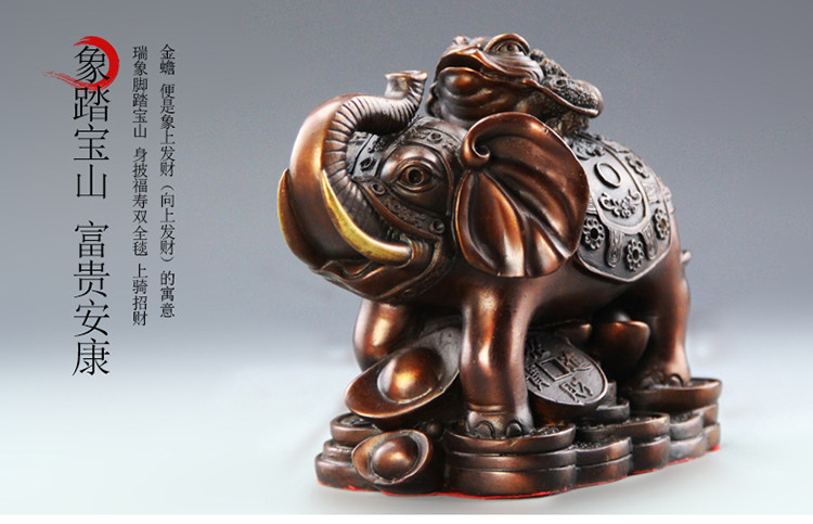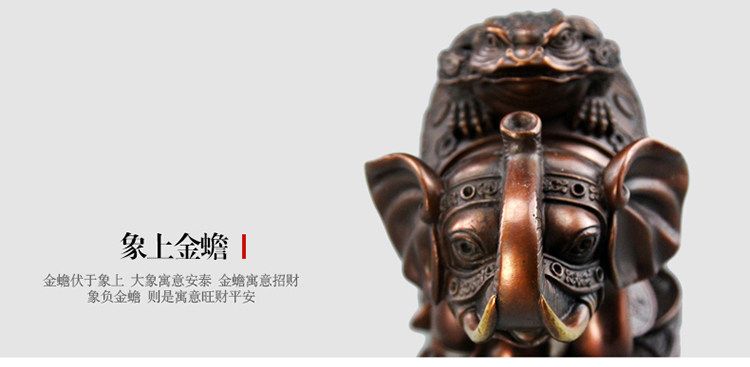 富贵荣华象上金蟾摆件铜大象办公室桌上摆件招财风水装饰品