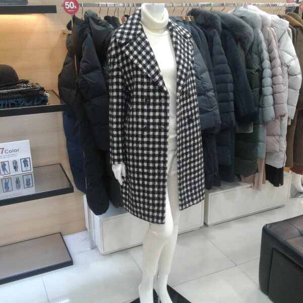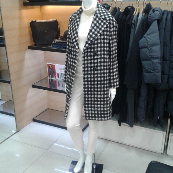 쉬즈미스 베이직한 디자인으로 깔끔하여 어디에나 무난하게 잘 어울리는 모헤어 체크 더블버튼 코트예요