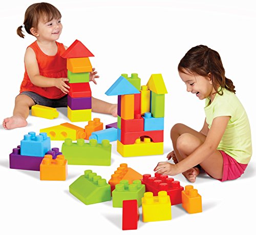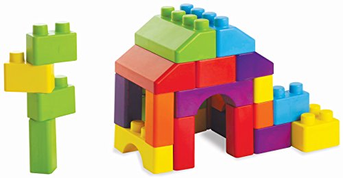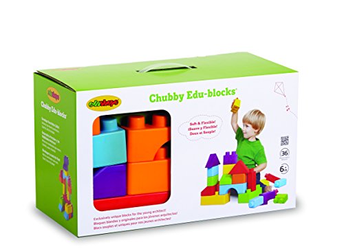 Chubby, easy to grip, colorful, flexible interconnecting building blocks made flexible and safe. Six bright colors and assorted shapes for near limitless building combinations. Made pliable to resist cracking if stepped on. Developmental qualities include Gross Motor Skills, Socialization, Building Logic, Reasoning, Color Matching and Hane Eye Coordination. Basic size: 3 1/2" x 3 1/2" x 3".