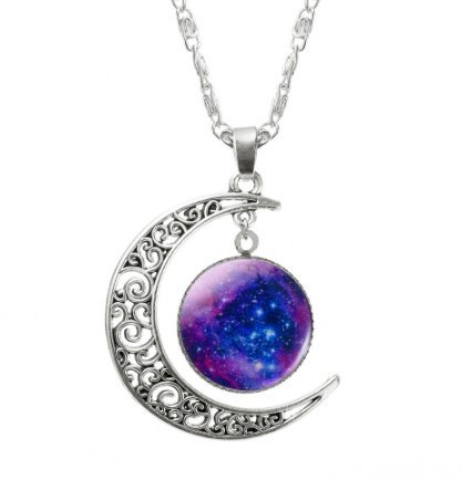 Qumaxx 2 PACK MOND KETTE I Einzigartige Entwurfs-Crescent Moon Galaxy Universe Glascabochon Anhanger Halskette