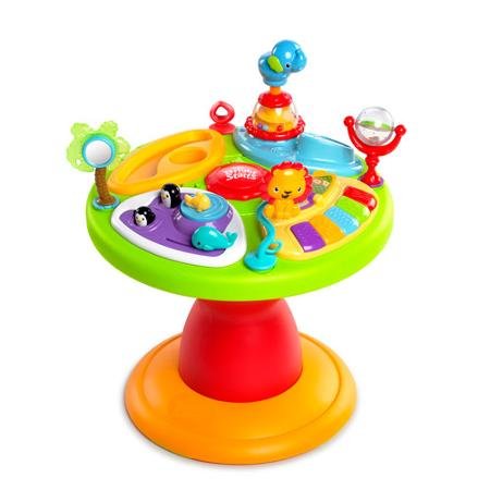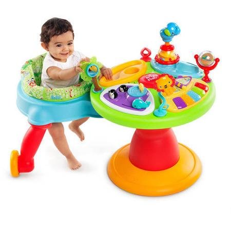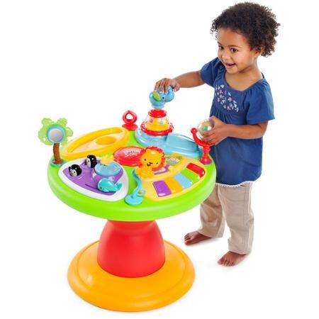 -. Binding : Baby Product -. Brand : Comfort & Harmony -. EAN : 0731084396818 -. Feature : Recommended for a baby up to 25 lbs Age start: 4 months/age end: and up / Seat easily removes to convert from a self-contained walker to a toddler activity table Seat rotates 360 degrees, allowing baby to walk around play table / 15+ activities including piano station with 3 play modes; use flip book to activate melodies, silly sounds and piano Action/reaction station with bead chaser, popping characters and spinner / Seat pad is machine-washable Seat pad and toy tray are easy to clean / Requires 3 C batteries (not included) -. IsAdultProduct : 0 -. Label : Comfort & Harmony -. Manufacturer : Comfort & Harmony -. ProductGroup : Baby Product -. ProductTypeName : BABY_PRODUCT -. Publisher : Comfort & Harmony -. Size : 37.0 x 25.0 x 22.0 -. Studio : Comfort & Harmony -. Title : Comfort & Harmony,bright Starts Zippity Zoo 3-in-1 Around We Go -. UPC : 731084396818