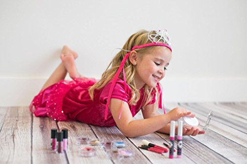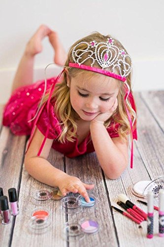 100 % FAKE! No transfer of color or substance! Our Super Deluxe Kit offers even MORE makeup for countless hours of fun and NO mess for anyone! We've added all the extras into this Super Deluxe Kit! Glitter Gloss, Lip Rollers and Nail polish complete the Super Deluxe Kit. Real brushes and real compact puff add a real-life experience to our silky-smooth play makeup that looks and feels like the real thing! Complete with our Classic Black and White Polka Dot cosmetic case AND our Classic Mini-Clutch Purse so your play makeup can go anywhere with you! Super Deluxe Kit Includes: 1 Pressed Powder Compact, 1 Four-Piece Brush Set, 3 Eyeshadows (Pinkle, Mocha, & True Blue) 1 lip color (Cherry Blossom) 1 Blush (Pink Petals) 1 Glitter Gloss 3 Lip Roller (Raisin, Posie Pink, & Cotton Candy) 2 Nail Polish (Baby Pink & Razzleberry Red) 1 Small Polka Dot Clutch Purse 1 Black & White Polka Dot Cosmetic Case Small Parts. CHOKING HAZARD. NOT FOR CHILDREN UNDER THE AGE OF 3. NOTE: THIS MAKEUP IS NOT REAL MAKEUP! 100% FAKE MAKEUP! DOES NOT TRANSFER ANY COLOR OR SUBSTANCE!Feature