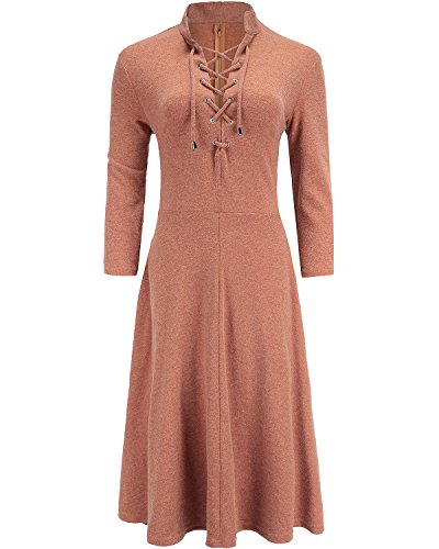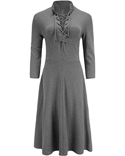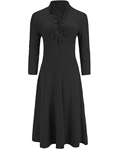 LACE-UP FRONT: Lace up and 3/4 sleeve design is the key of the dress, it's work well with my your sexy body shape. The fabric is warm, and sort of heavy, it fits well and flatters the figure.