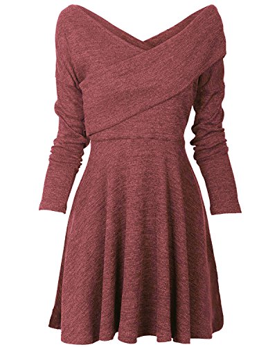 WRAP CROSSOVER V-NECK: The inside is constructed very well, nice serge seams, no loose threads, hemmed bottom and sleeves; Long sleeve; Asymmetrical back; A-line swing is perfect show your waist curves; Perfectly wearing this this fall with a pair of leggings, also can match with a boots to have a flattering look.