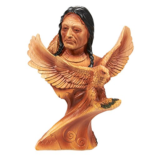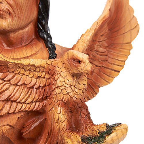 Native American Indian Figurine - Indian Warrior Native Decor, Polyresin Face and Perched Eagle Indian Sculpture for Interior Decoration, Brown - 5.2 x 7 x 2 Inches