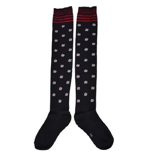 -. Title : Dame Damen Schwarze Blume Bedruckt Streifen Dekor Kniestrümpfe Strümpfe