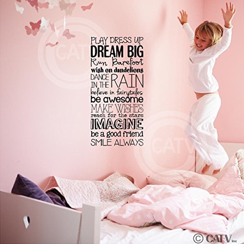 Girl version Kid Rules subway art vinyl lettering wall saying decal quote sticker nursery child room (Black, 12x25)