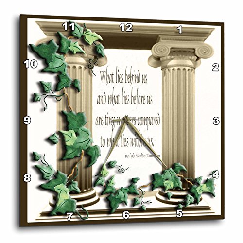 Ivy Pillars What lies behind us Wall Clock is a wonderful compliment to any room in your home or office. Made of durable high grade aluminum. This clock has a high gloss mirror like, UV coated, scratch resistant finish and is suitable for a moist environment. Available in multiple sizes, requires one AA battery; not included. Battery box is not covered.Feature