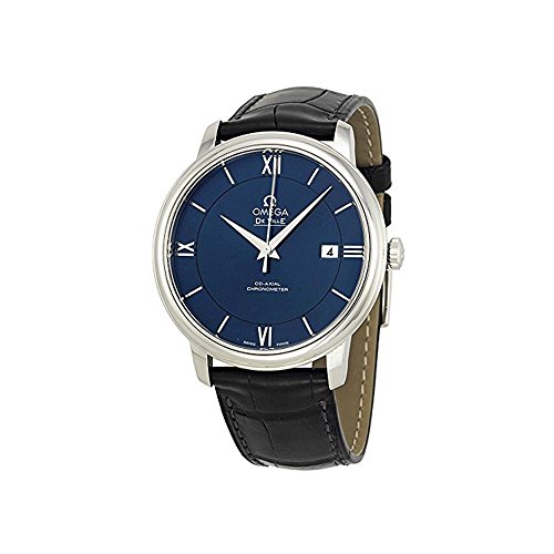 -. Title : Omega De Ville Prestige Blue Dial Black Leather Mens Watch 42413402003001