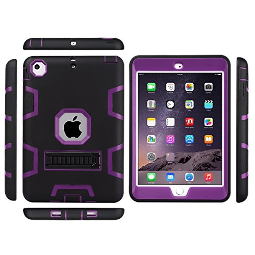 iPad mini Case,iPad mini 2 Case,iPad mini 3 Case,iPad mini Retina Case,BENTOBEN [ Kickstand Feature ],Shock-Absorption / High Impact Resistant Hybrid Three Layer Protective Case Cover(Black+Purple)