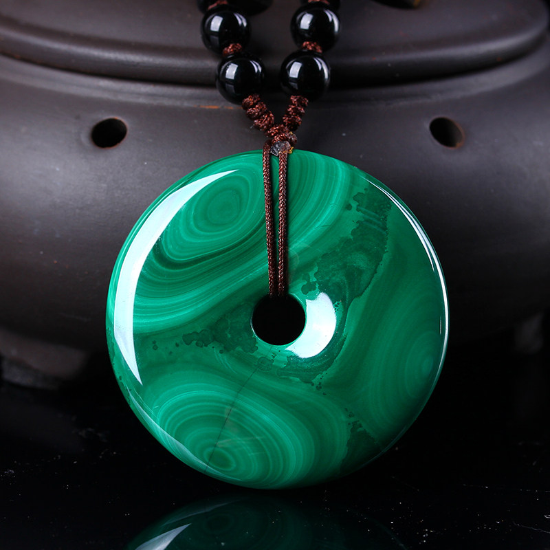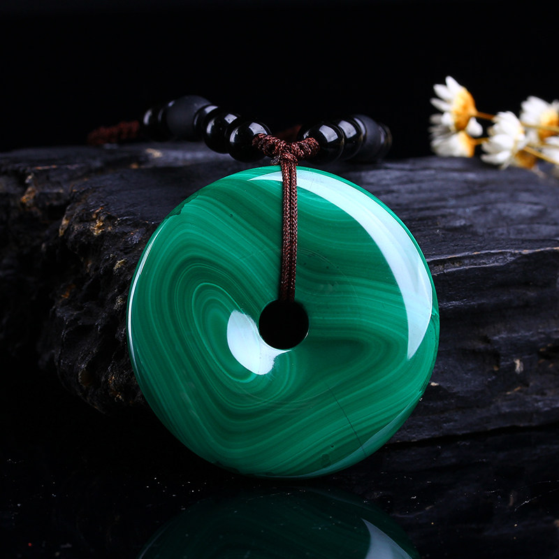 天然孔雀石吊坠 平安扣吊坠项链配挂件绳