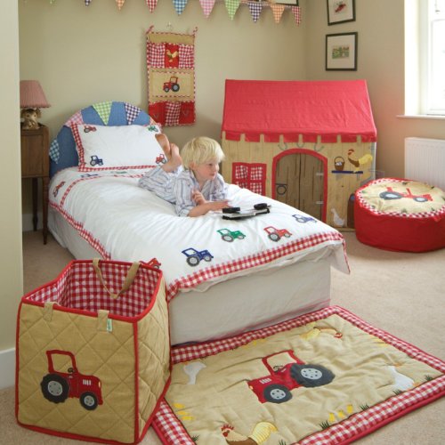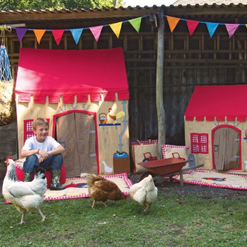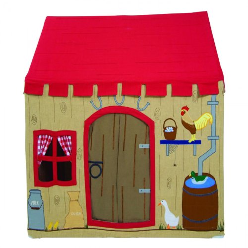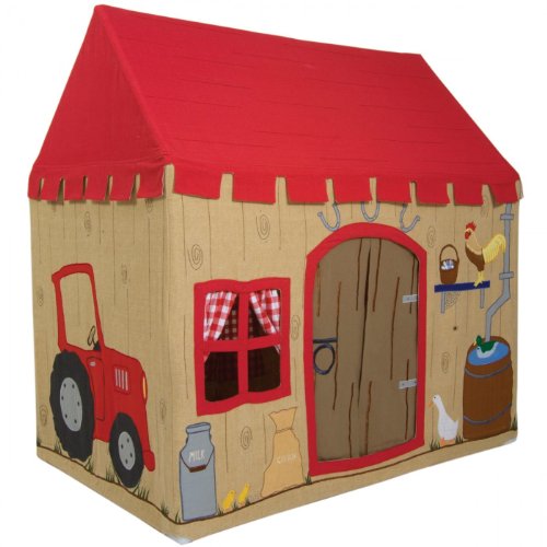 Studio : Win Green Publisher : Win Green Binding : Toy Product Description We all love a day out on the farm! This fun and colourful Barn playhouse is appliqued and embroidered with a big red tractor, cockerel, duck and ducklings, a farm cat and even a dung heap! Complete with knots in the wood and finished with bright red gingham curtains. 100% cotton. Easy to assemble with a light metal frame. Storage bag included. 110cm long x 74cm wide x 110cm high 0