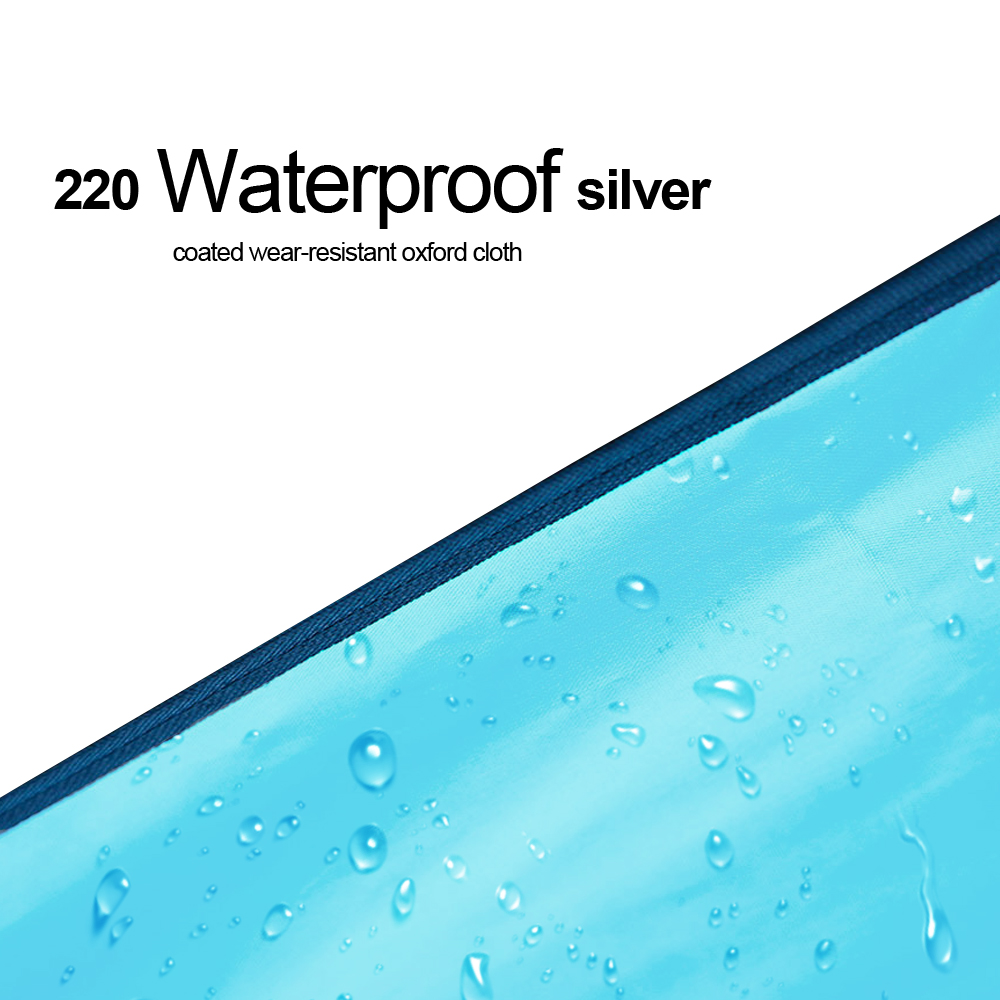 • Materials: 220 silver wear-resisting Oxford cloth. Waterproof index: 3000 mm.