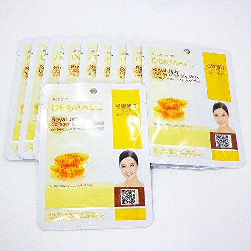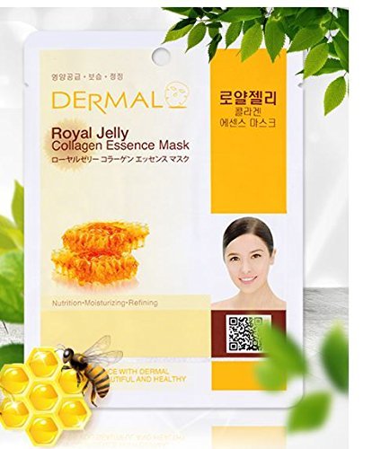 -. Feature : Dermal Korea Collagen Essence Full Face Facial Mask Sheet Pack No.2 Royal Jelly 10pcs / No.2 Royal Jelly- Nutrition, Moisturizing,Refining / Dermal Royal Jelly Collagen Essence Mask is a new essence mask which specially formulates cosmetics to penerate highly concentrated active ingredients into the skin while keeping air out of the skin completely thus, it makes your tired skin mositened, elastic, clear and relieves your skin from stress / Skin Confidence with Dermal makes you beautiful and healthy / Made in Korea
