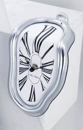 This clock melts off your wall, and keeps accurate time too. Size 7-1/4-inch height by 4-5/8-inch weight by 5 1/2-inch deep.