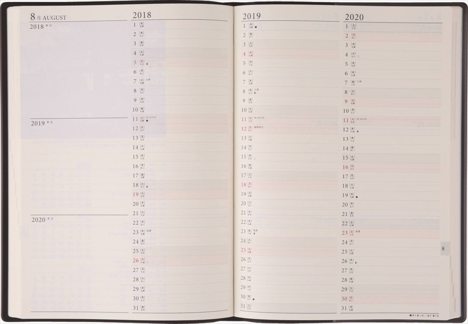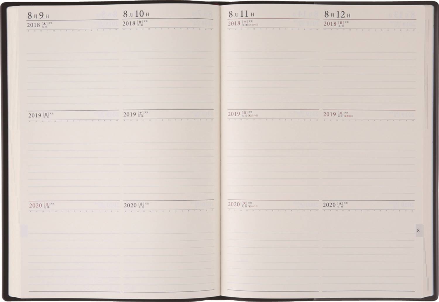 There are 3 rows of 3 rd lines for 2 days on 1 page and you can use it with confidence. When it is used continuously, if there are several types of covers with different colors, it seems to be easier to use.