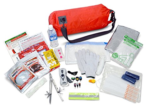 내용물:숄더부 드라이버《구》,간이 화장실세트×3,거즈부 반창고x4,목장갑적 로프세트고, 콤팩트 멀티 툴,re《후레쿠토테푸》,일회용 속옷x2,마스크x3,알루미늄 씨트,라디오부 다기능 라이트,수납 파우치,우옷,방재 메뉴얼,장기 보존 주식,장기 보존 부식,얼음사탕40g,보존 수500ml,포크 스푼,발열 제,가열대