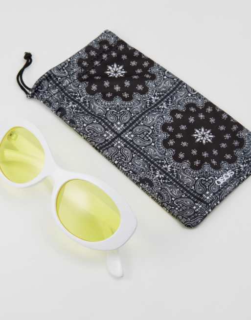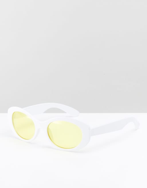 ASOS Oval Sunglasses In White With Yellow Lens