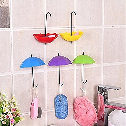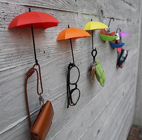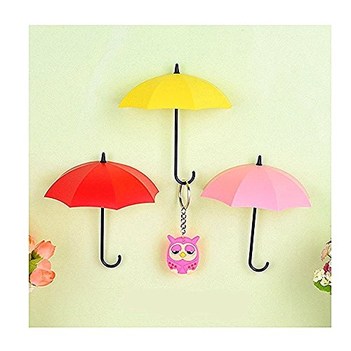 -. Title : Windspeed 3 pack of Colorful Umbrella shaped Hanger Hook/Wall Mounted Adhesive Holder for Home Kitchen Jewelry Key Small objects Hanging