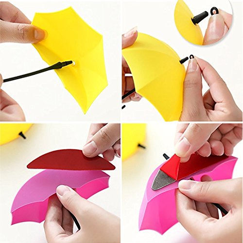 -. Feature : This Colorful mini umbrella wall hanger hook,decorate your home and kitchen with romatic and utility / Size:8X8CM Weight:15g/PC Material:ABS plastics / Max hold up to 0.1KG(3.5oz),easy to hold keys,glasses and other light good / Adhesive:provide strong adhesive by "3M" without nai. / 3 pcs per set, Set1with Blue,Purple,Green colors. Set2 with Red,Yellow,Green colors