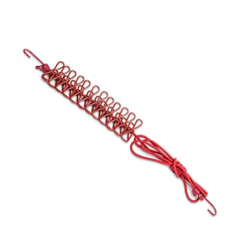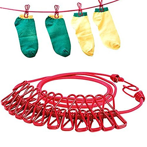 Product details: Material:PP stainless steel material,durable and strong. Made up of a long bungee cord,the cord is expandable/stretchable and the steel hooks allow you attach your line almost anywhere. Great for travel,outdoor camping,and home use ,A very convenient and handy tool. This clothesline Can hang underwear,towels ,socks,cloth diapers.bathing suits.etc... It's easy to take to the beach and use in your canopy to attach wet trunks or towels. The length of this clothesline is around six feet, but it can be stretched just over ten feet. 0