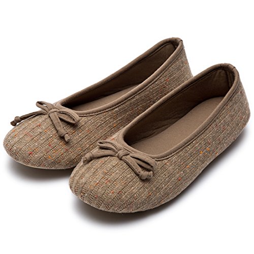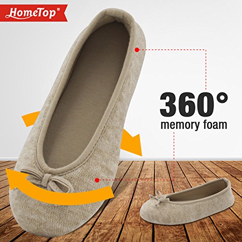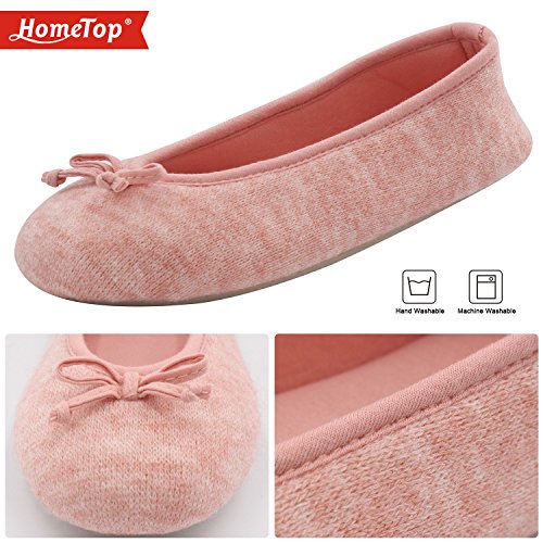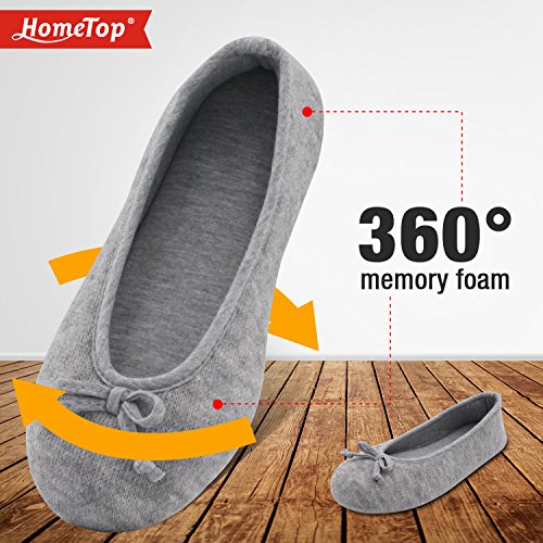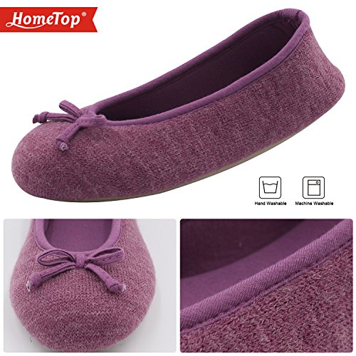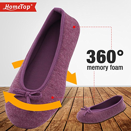 Binding : Apparel Product Description These cute HomeTop Women's Ballerina Slippers envelop your feet in soft knits, and cozy cushioning may have you saying 'Oops, I wore them all day long!' You will not take them off because: - Very adorable appearance let them become the prettiest house slippers you've ever had. - Closed-toe and full-wrap design brings a secure, custom fit to suit your active lifestyle. - The lining cotton material is breathable, soft and extremely comfortable. - Extra soft memory foam insole provides unsurpassed cushioning and a customized fit. - Anti-slip low profile rubber outsole for increased stability and support. - Can be worn in bedroom, living room, office, apartment, hotel and other daily use. - You can wear them all weather, especially better in spring, autumn and winter. - Machine or hand washable, easy to care, ultra light weight. Enjoy the soothing comfort and personalized relief of these stylish ballerina house slippers. You'll love coming home from a long day at work and slipping your achy feet into these soft and comfy slippers. Snap up a pair of these sweet slippers, and you'll have the perfect footwear for the end of a long day. Take and wear these adorable and comfortable ballerina slippers wherever you go and watch the compliments pour in. 0