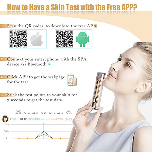 Free Skin Test & Monitor APP: There comes Free APP to monitor your facial condition for 24 hours a day, remind you in time to use the face moisturizer, help you keep your face in hydration and protect your healthy skin. Bluetooth connection between the app in your smart phone and the SPA device