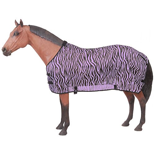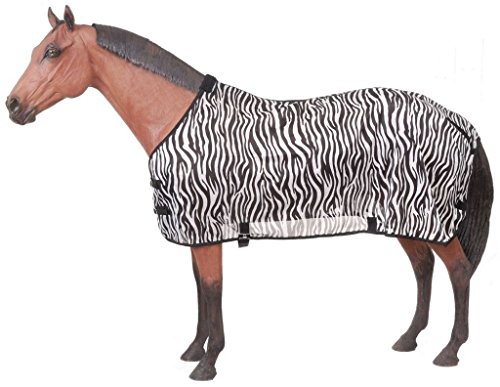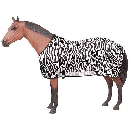 Studio : JT International Publisher : JT International Binding : Misc. Product Description Tough-1 Zebra Mesh Fly Sheet The zebra patterns have been shown in recent studies that horseflies and common flies are not attracted to this pattern. The flying pests are confused by the way that the light reflects off the black and not off the white. The lightweight poly/nylon mesh allows natural air circulation over the horse which helps to keep the flies and insects away. Features: Lightweight poly/nylon mesh Double buckle front Adjustable surcingle belly and leg straps Specifications: Measuring Instructions - Stand your horse as square as possible, measure from the center of chest around side of the body to the point of the horse's rump just before the tail. If you horse ends up measuring between sizes always round up to the next size to ensure full coverage. Washing Instructions - Machine wash with cold water - Gentle cycle with mild detergent. Air Dry or Machine Dry/No Heat Horses Turned Outside without Shelter - Turnout Sheet and Blanket materials are waterproof and designed to keep your horse dry, however if your horse is turned out in a field without a run in shed or shelter during prolonged rain or heavy downpours your horse may still get wet especially in the neck and tail areas. When using a blanket or a sheet on your horse it is critical to monitor the fluctuating climate and temperatures even with a blanket that is waterproof and breathable. The wicking properties of a breathable blanket are designed to wick away normal body heat, when a blanket is too heavy the heat and moisture cannot be wicked away fast enough causing your horse to sweat. The temperature and the length of your horse's coat will determine what weight of blanket you should use. For this reason, most people who choose to blanket horses have several articles of horse clothing that offer varying levels of warmth. 0