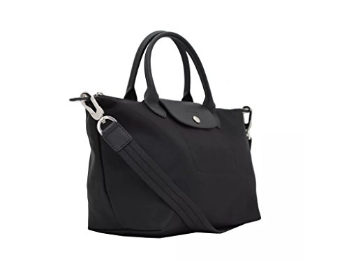 -. Brand : L.O.N.G.C.H.A.M.P -. Color : Black -. Department : womens -. EAN : 0671194294430 -. Feature : Removeable Crossbody strap / Black nylon with black leather details / Medium size 17" X 13" X 6.5 d / Silver hardware -. PackageQuantity : 1 -. ProductGroup : Shoes -. ProductTypeName : HANDBAG -. Size : Medium -. Title : L.O.N.G.C.H.A.M.P Neo Le Pliage Black Medium Tote Bag Handbag -. UPC : 671194294430