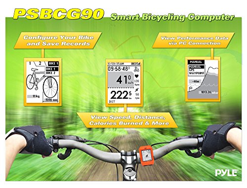Train smarter with the Pyle PSBCG90 GPS Smart Bicycling Computer. Built-in GPS navigation with integrated computer and included software give you detailed performance analysis. Track your bike route, or create a new one, measure personal statistics like distance, speed and pace, track altitude with built-in barometer, you can even wirelessly connect additional devices like heart rate, RPM and time sensors thanks to ANT+ Technology support - you can do it all. When you're done with your bike run, connect the Smart GPS to your computer to see detailed maps and graphs to chart your performance. Unlock more possibilities, improve your performance and achieve a new level of motivation with the Pyle PSBCG90 Smart Bicycling Computer.Feature