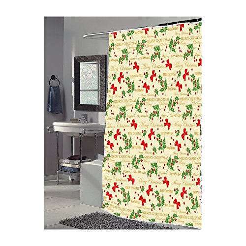 Carnation Home Fashions "Merry Christmas" Fabric Shower Curtain