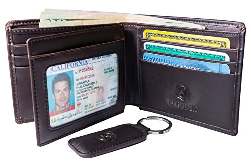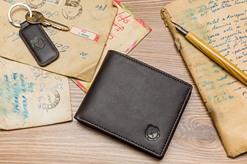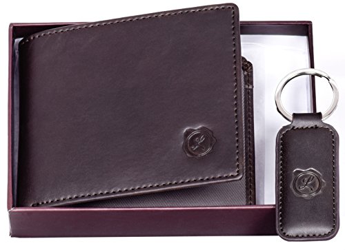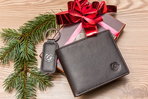 -. Feature : ***The Perfect Christmas/ Holidays Gift*** / GENUINE LEATHER SET- Offers you a minimalist and casual bifold wallet completed by a simple but stylish key chain, both made 100% of high quality authentic leather. / DESIGNED FOR YOUR NEEDS- Our multi-functional wallet was thought so it is slim enough to fit your front or back pocket but roomy enough to provide 8 credit card slots, 1 large cash compartment and 1 quick access double ID window for your 2 most used ID cards. / PROTECTS YOUR P.R.IVACY- Offers you the limited-in RFID blocking technology, engineered specifically to block 13.56 Mhz or higher signals, protects the valuable information and data stored on your card. / ELEGANT GIFT BOX- This makes it perfect as a birthday present, business gift, employ benefits but most important for personal use.