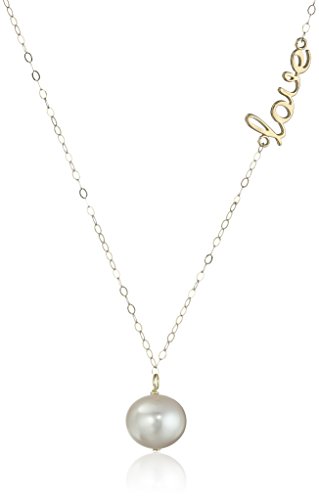 Aurapearl 10k Yellow Gold 9-10mm White Potato Freshwater Cultured Pearl Love Pendant Necklace, 16.5"