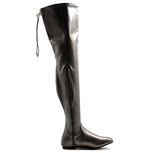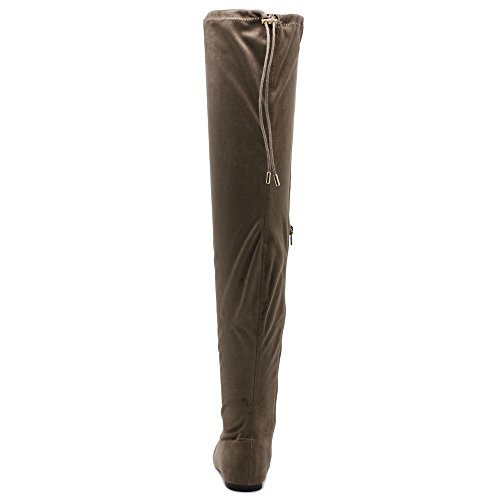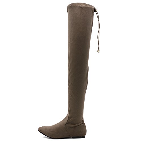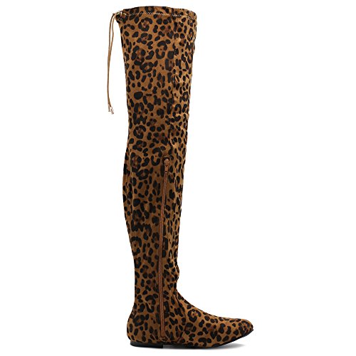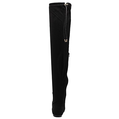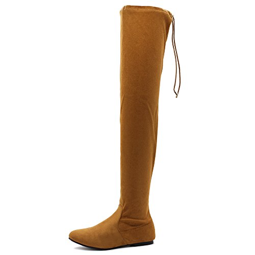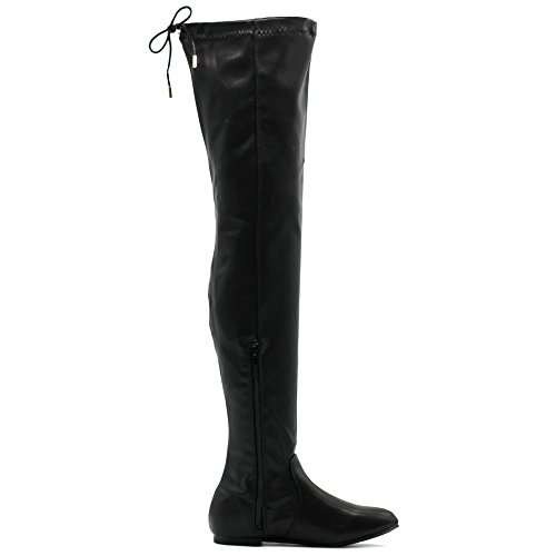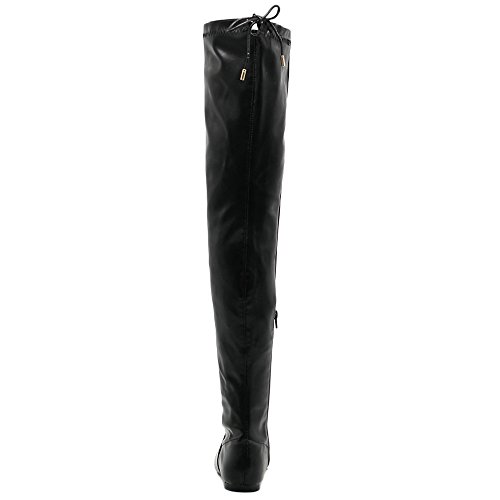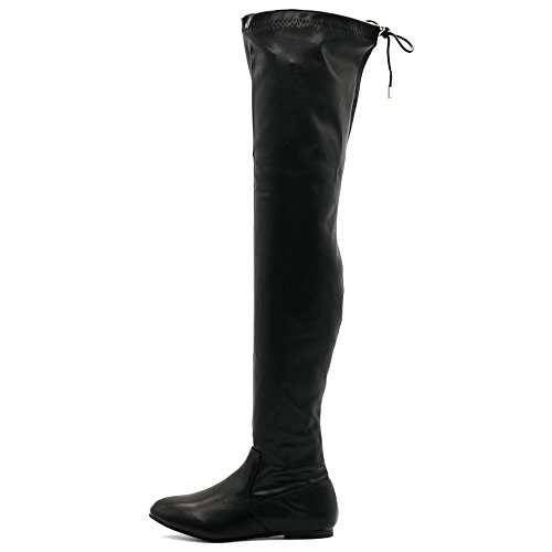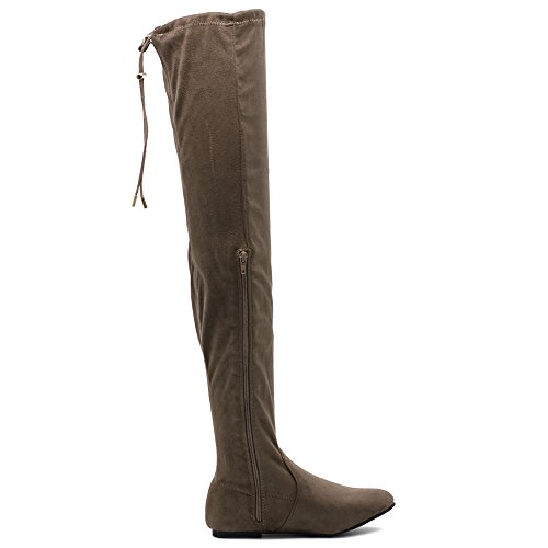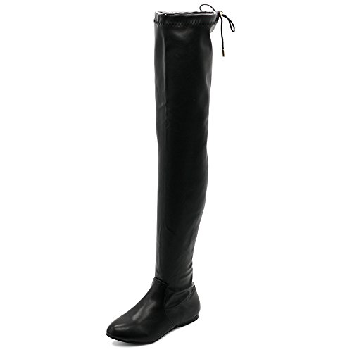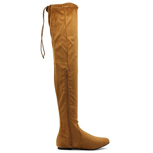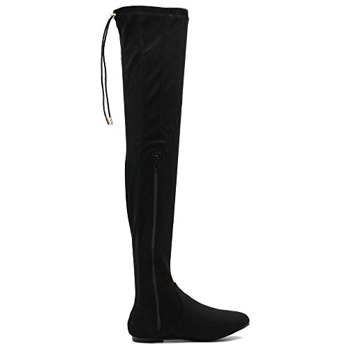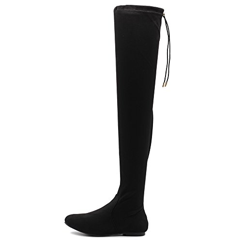 | Ollio Women Shoe Adjustable Drawstring Span Faux Suede or Faux Leather Thigh-high Zip Up Long Boots |