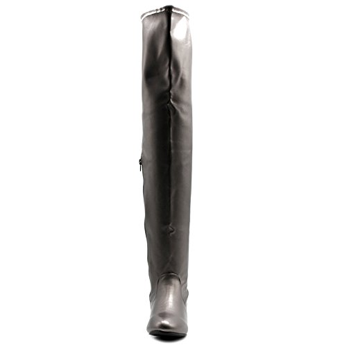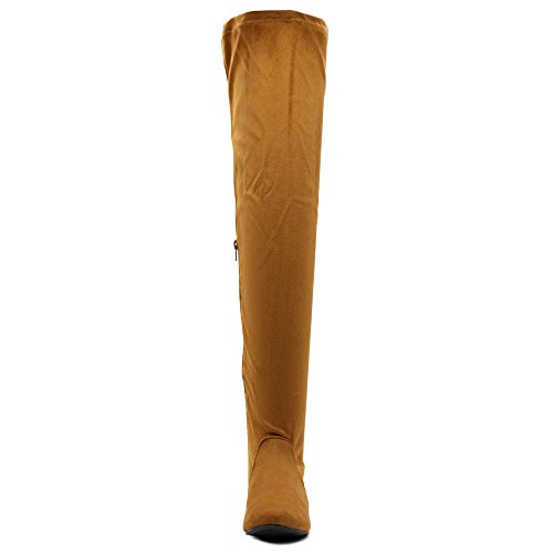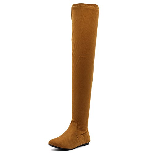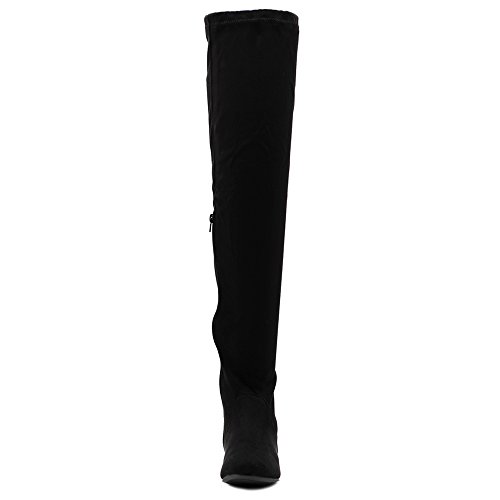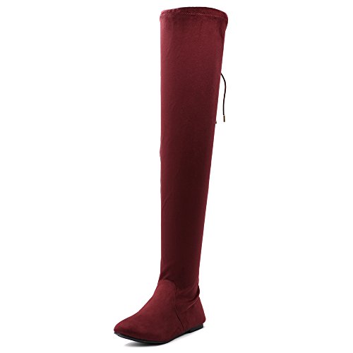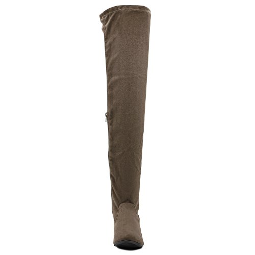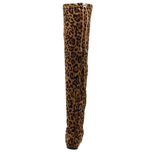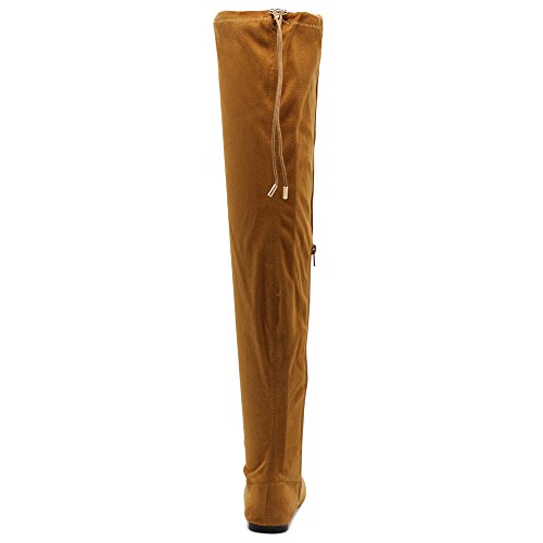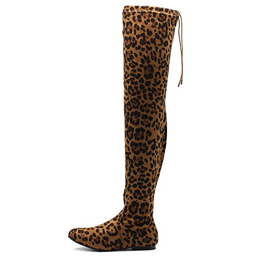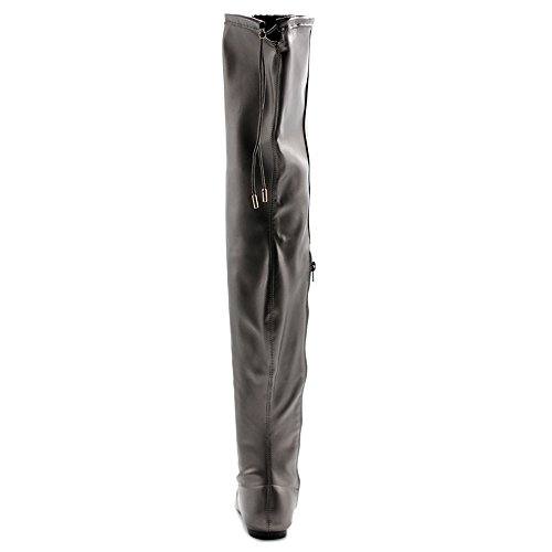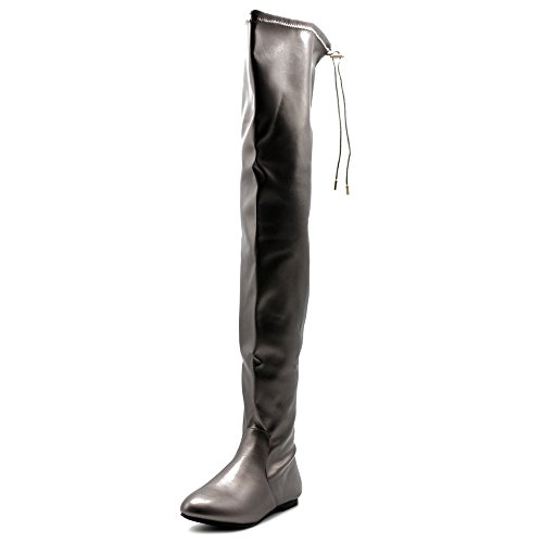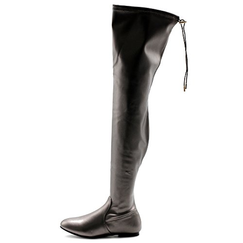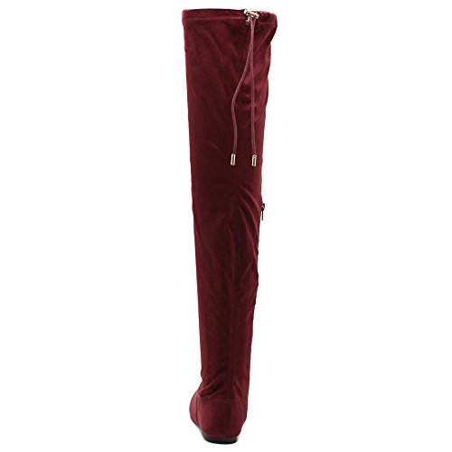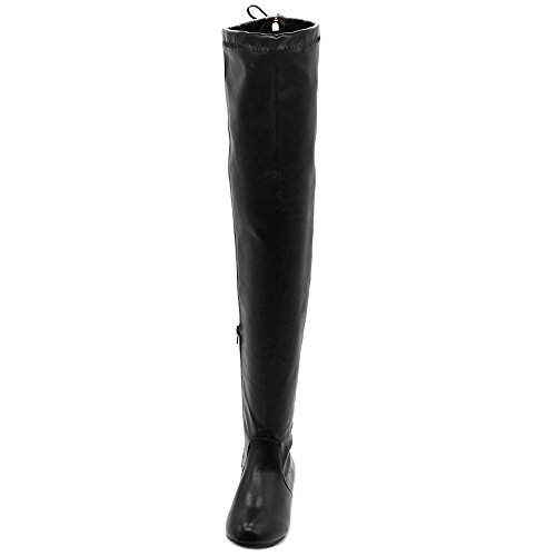 | Ollio Women Shoe Adjustable Drawstring Span Faux Suede or Faux Leather Thigh-high Zip Up Long Boots |