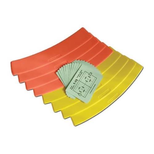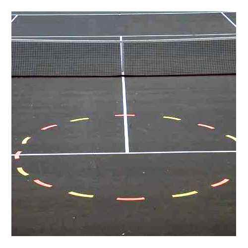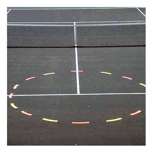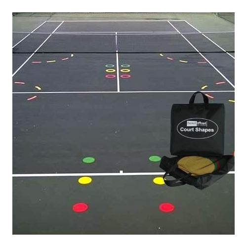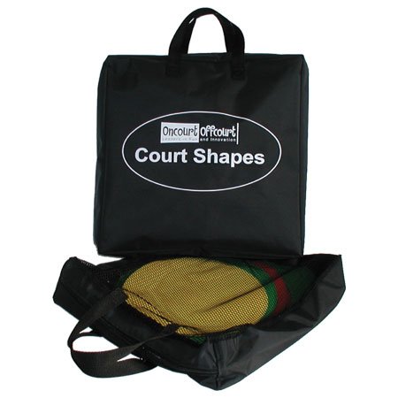 Product Description Create target zones, running drills, court position guides, and group organization quickly with the full set of Oncourt Offcourt Court Shapes: Curves, Spots, Lines, Corners, and Donuts. The Spot and Donut Sets come in red, yellow, and green - two of each color. The Curves, Lines and Corners come in brilliant optic yellow and orange. All shapes are slip-proof on hard courts and gym floors, and are made of extremely durable fade-resistant rubber. Includes convenient carry case. "