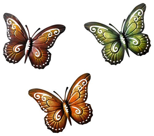 Studio : Pier Surplus Publisher : Pier Surplus Binding : Kitchen Product Description This colorful set of three butterflies has been masterfully crafted from metal and varnished to give it long-lasting color. Each delicate wing has been painted by hand, giving the perception of three graceful creatures that have set down to rest on your wall. Each metal butterfly is easy to maintain; simply wipe off dirt or dust with a mild soap and a damp cloth. A wonderful hostess or housewarming gift! 0