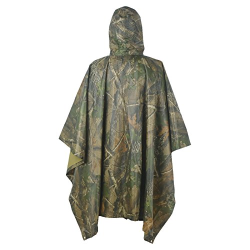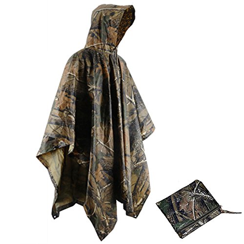 -. Title : Adults Military Multifunctional Waterproof Ripstop Hooded Waterproof Rain Poncho Camo Portable Raincoat for Men Women Outdoor Camping Hunting Fishing with Matching Bag