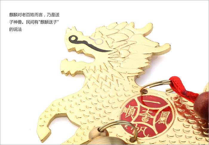 Kirin is a traditional Chinese folk culture culture , such as Kirin sons, that old Chinese folk fertility . According to legend, unicorn beast of benevolence , is a symbol of good luck , man can bring heirs . Legend has it that the students of Confucius evening , there unicorn spit Yushu its home, write " Undine 's sons , decline and Su Zhou king" , meaning he has the emperor of Germany but not in his position . Kirin but legendary mythical creature , may not exist in real life ; unicorn standing behind the beasts of the dragon . Ancient Chinese legend unicorn and dragon, phoenix, tortoise together as four spirits , animals are king of wool ; unicorn for the people concerned, but the animal has ever been . People have " unicorn sons ," saying of Confucius is rumored to have sent unicorn ; unicorn is generated Jupiter spread , it is one of the most famous master auspicious auspicious . Bell , ornaments can be hung , it is refreshing and clear crisp sound ; able to ward off evil spirits resolve the problem-solving expel demons living Choi Choi defends cited as the fiscal front of the store to hang successful career - making plenty of money . . . . . . resolve all damage ; are feng shui to resolve things , changes in the magnetic field of the mansion has resolved to make evil spirits home feng shui can achieve the effect of good fortune of Lucky , so be content with the financial position or evil bit . .. Collection is also available in a cornucopia . Two of the five yellow fleeting Heisha also has a unique effect, bad luck or lack of gold hungry Jin row of bad luck , they can knock off bells to bad luck .