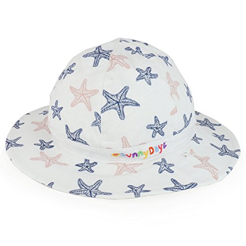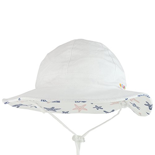 Binding : Apparel Product Description Our Trendy Apparel Shop Infant Baby Girl's Reversible Starfish UPF Sun Floppy Cotton Hat is an adorable UV sun infant hat for your baby girls. This infant size cotton bucket hat is designed with cute starfish prints. Reversible bucket hat. Made of 100% Cotton. UPF material of hat protects your infants from harmful UV sun rays. Flexible, packable and crushable hat. Brim measures 1.75 ~ 2 inche wide. Fitted with an adjustable chin strap, chin strap is removable. 2 infant sizes are available; 44CM(0-12 months) and 48CM(12-24 months) 0