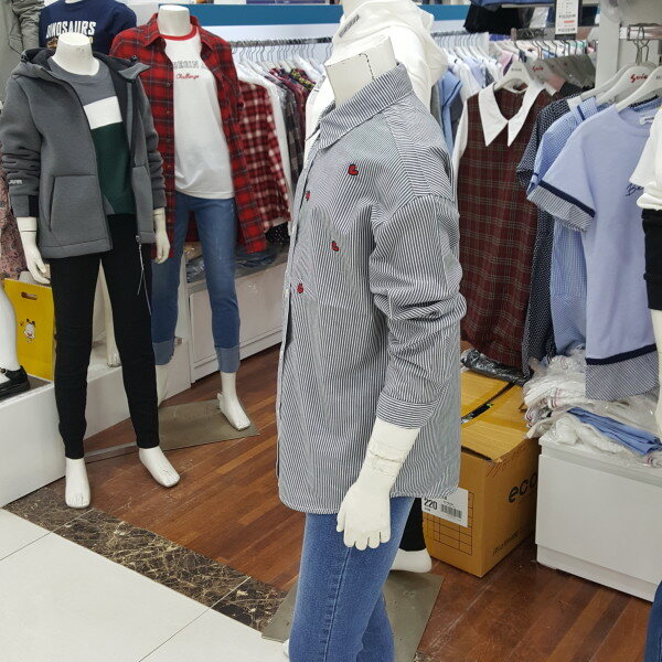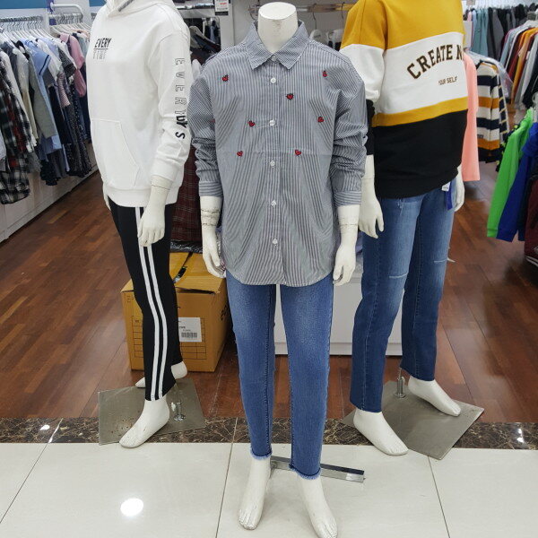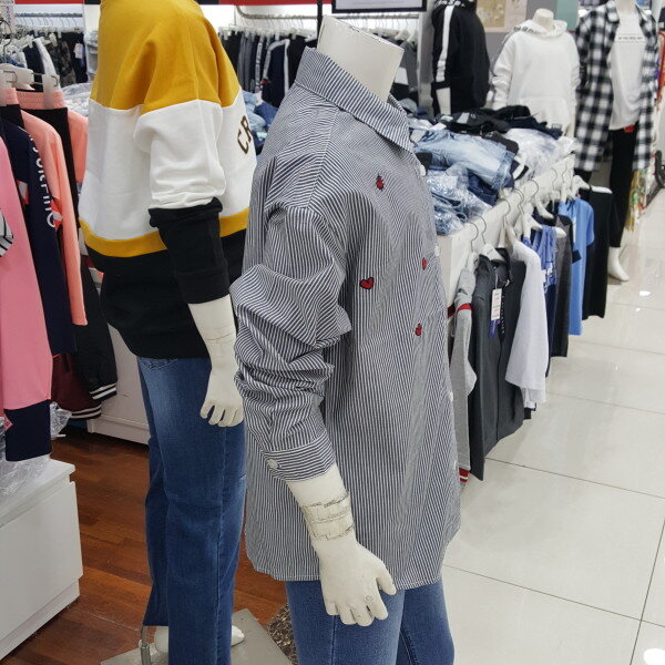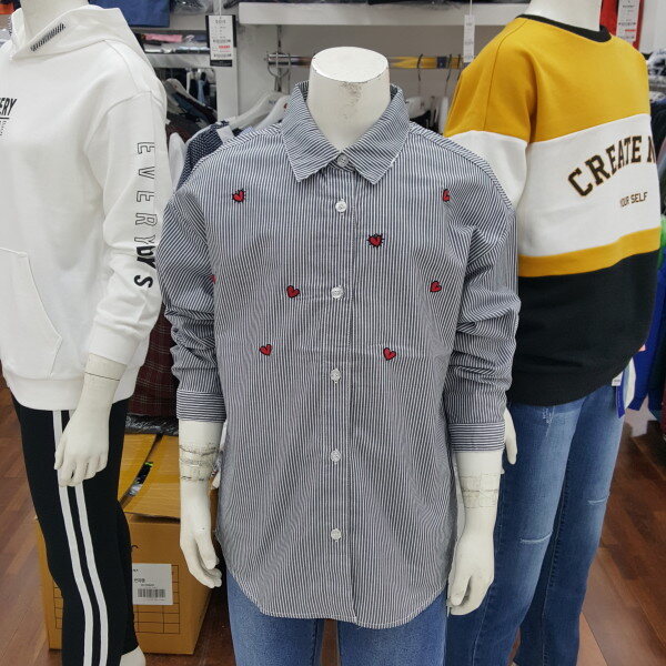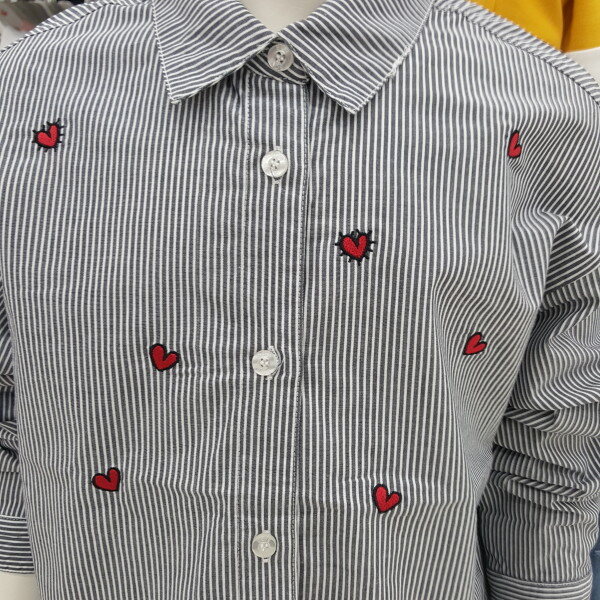 하트 자수 스트라이프 셔츠 입니다.