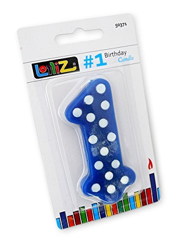 LolliZ Candle #1 First Birthday. Pack of 1. BLUE w/ White Polka Dots. Unique Novelty Design