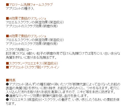 "Alorim Cleansing Foam Scrub C 220 g" is a scrub facial cleanser that can crush the old horny skin cleanly, with the apricot seed lumps.