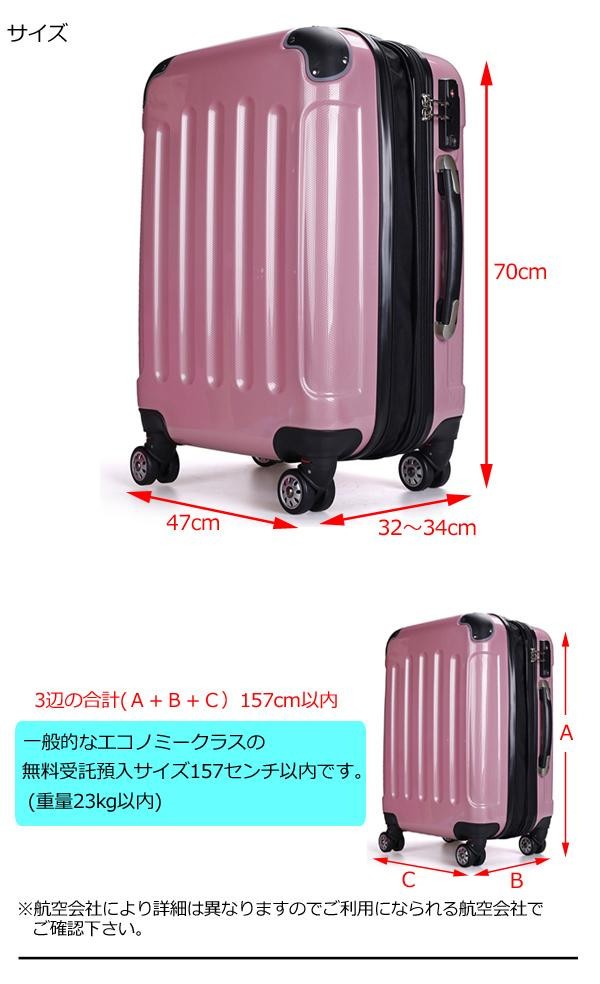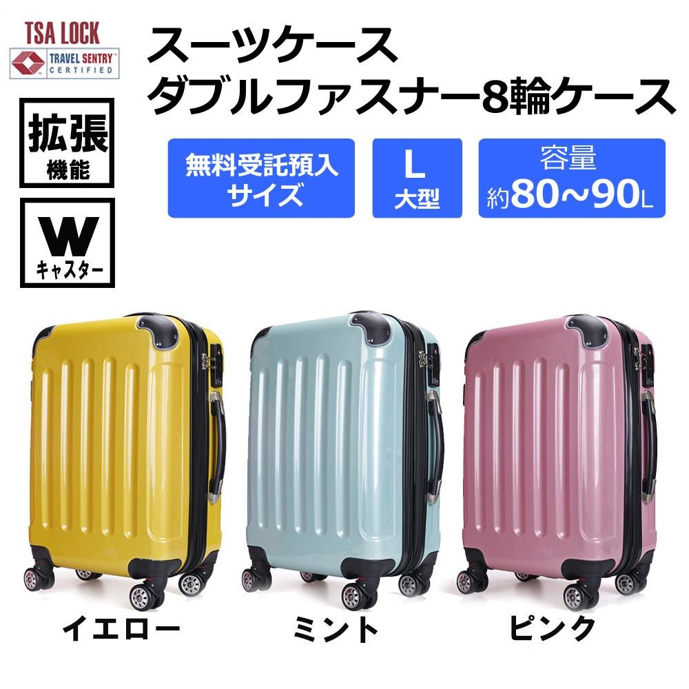 | 仕様 | 容量:約80~90L 拡張機能 キャスター8輪(Wキャスター×4) TSAロック搭載 無料受託預入サイズ(157センチ以内) |