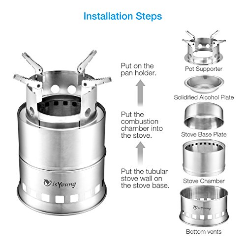 Function: isYoung Stainless Steel Burning Camping Stove - Compact Wood Burning