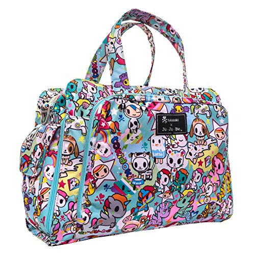 Color-coded tabs let you know which pocket is for which child. Tote handles can be tucked away and hidden when not in use.